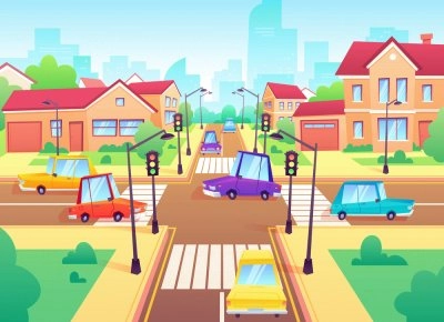 Strada cittadina trafficata Quartiere