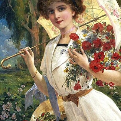 mujer con ramo - Puzzle in pausa
