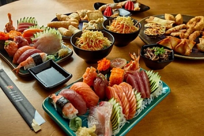 Piatto di sushi con influenze floreali Piatto