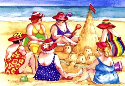 Donne sulla spiaggia (cartolina d'epoca) Spiaggia