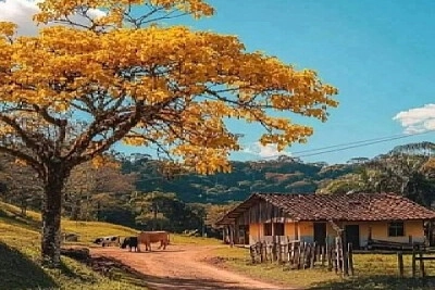 Casa di campagna sotto il cielo blu Architettura