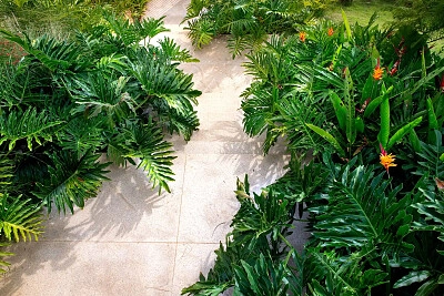 Caffè con piante d'appartamento erbaceo