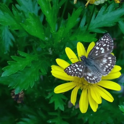 Mariposa y margaritasQuesto puzzle appartiene ad un album utente Flores e insectos Proprietario dell'album: Jalibardi