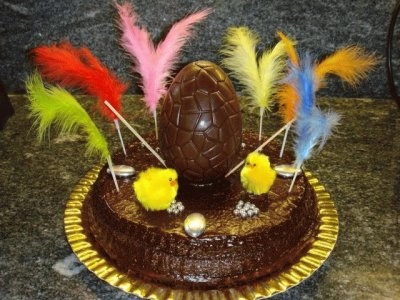 Una mona con un gran huevo de chocolate