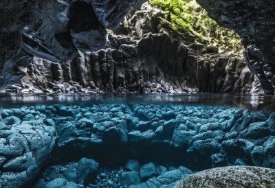 Cave above and below water