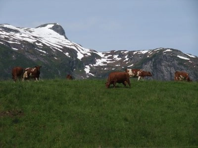 mucche sotto il ghiacciaio