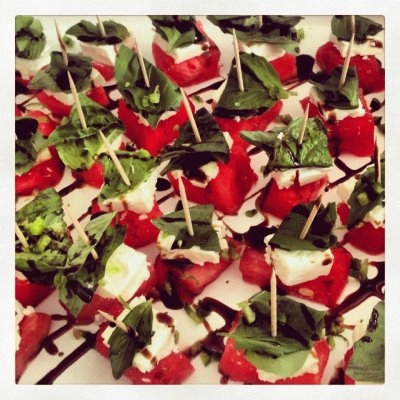 goat cheese, basil, and watermelon