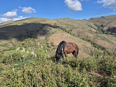 Koń w górach Pasący się