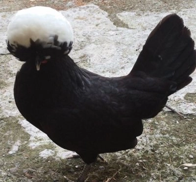 Gallina olandese con ciuffo bianco