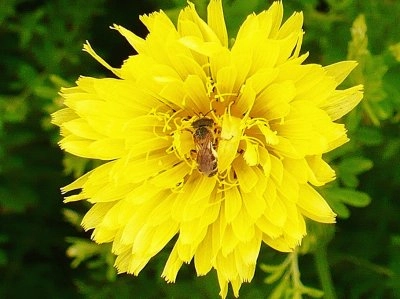Bee hiding in dandelion