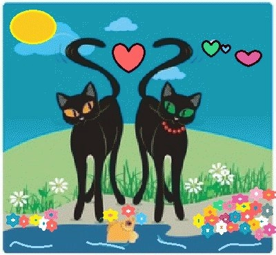 Dois gatos, pintura azul e amarela Arte