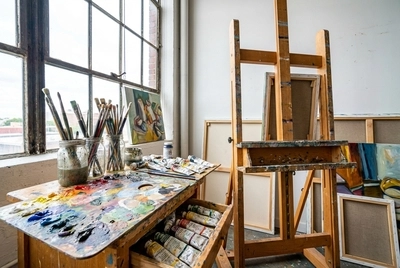 Cantinho colorido do estúdio dos artistas - Jogo Pausado