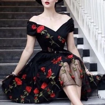 Retro Off the Shoulder Tulle Black Party...Este quebra-cabeça pertence ao dono do álbum My Album Meu álbum: Oleksandr Iablonskyi (JABTV)