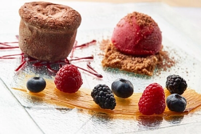 Apresentação Elegante de Sobremesa Framboesa
