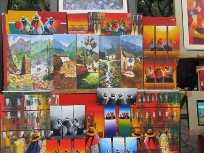 | Pinturas en plaza de Miraflores, Lima. - 25 bitar | |||||