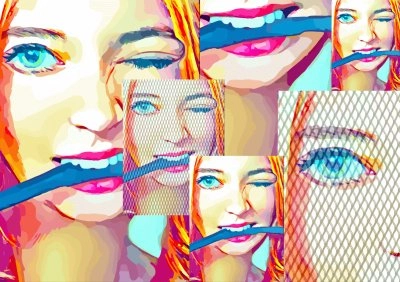 Gul-Röd-Blå Collage