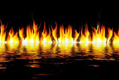 Flames over water.