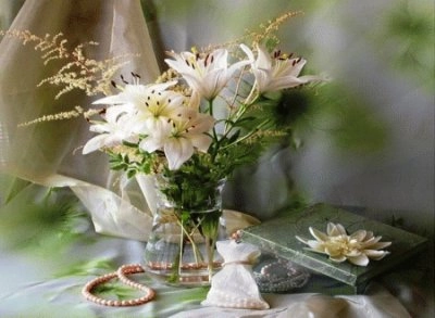 Beautiful White Lilies and PearlsDet här pusslet tillhör användarens album ♥ Absolutely... Albumets ägare: Karen Southern California